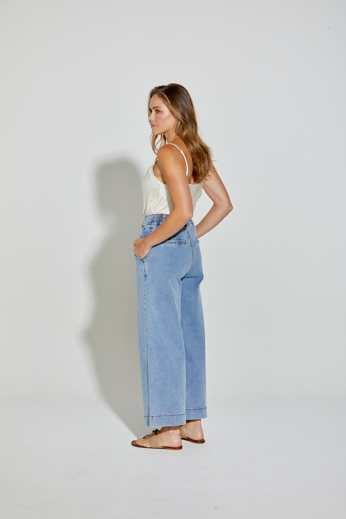 • High-rise wide leg palazzo jean