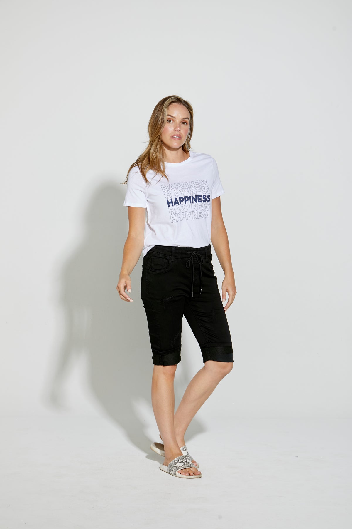 Mid-rise drawstring pull on jogger jean