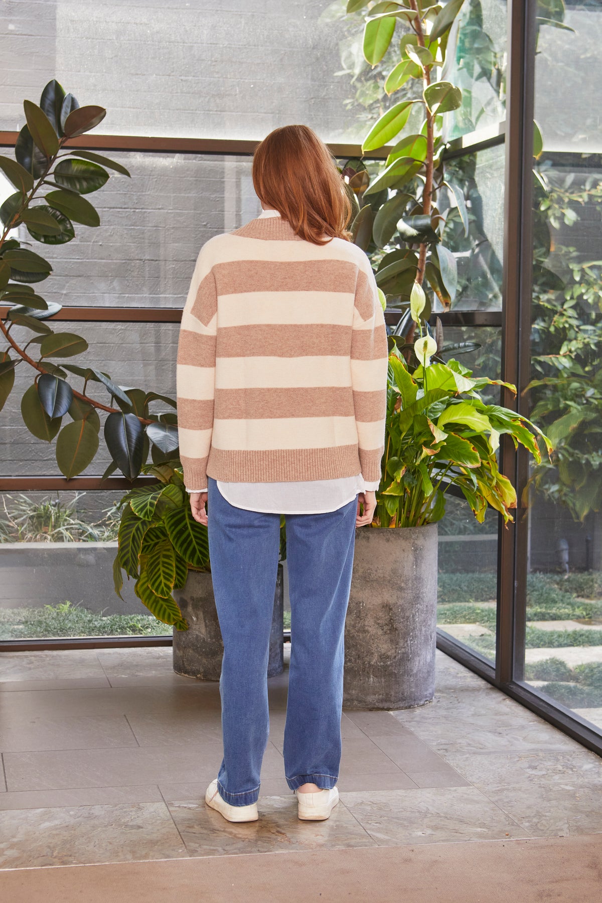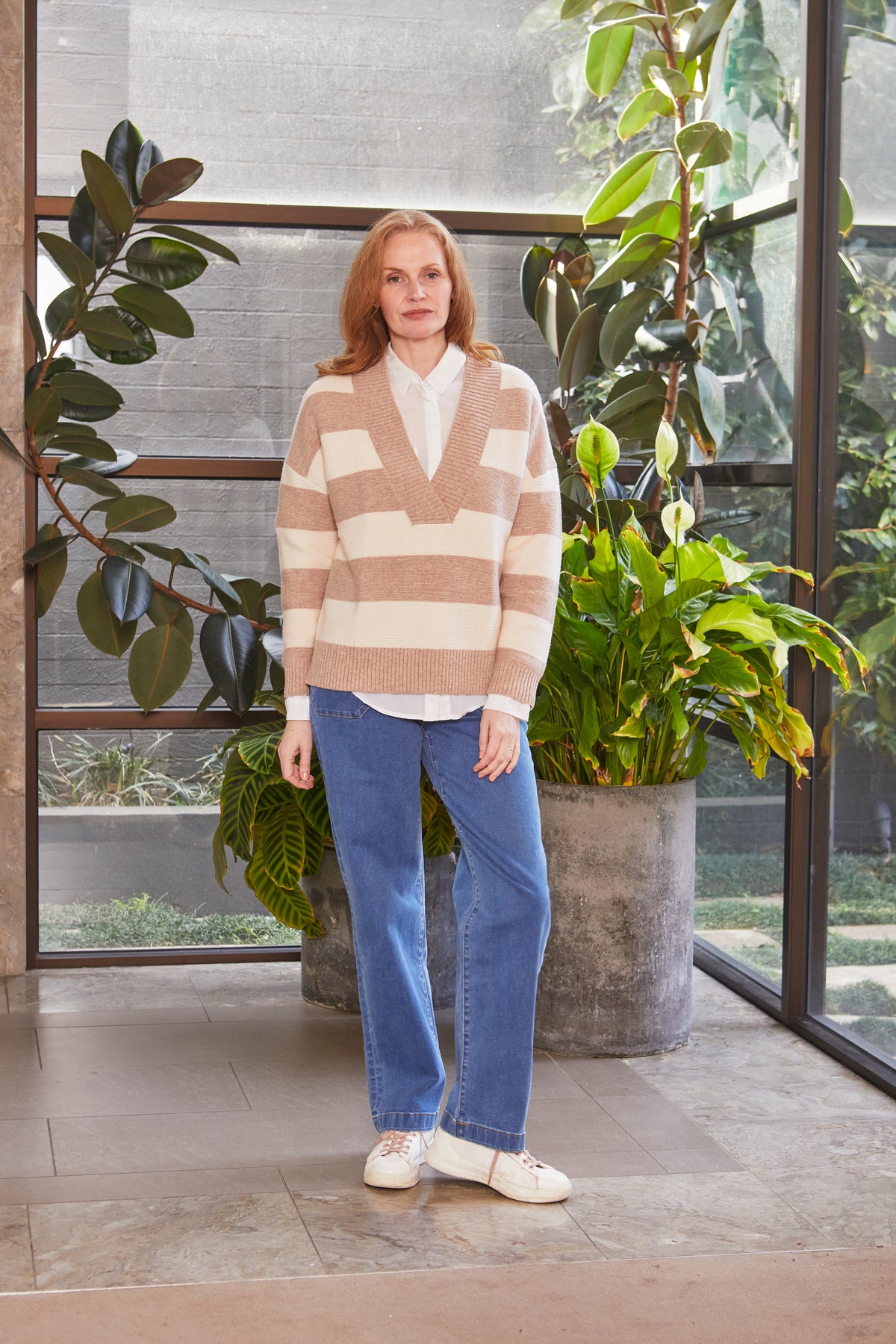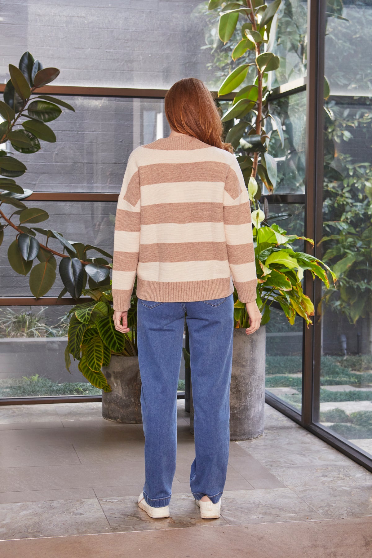 • CHUNKY V NECK STRIPED OVERSIZED SWEATER