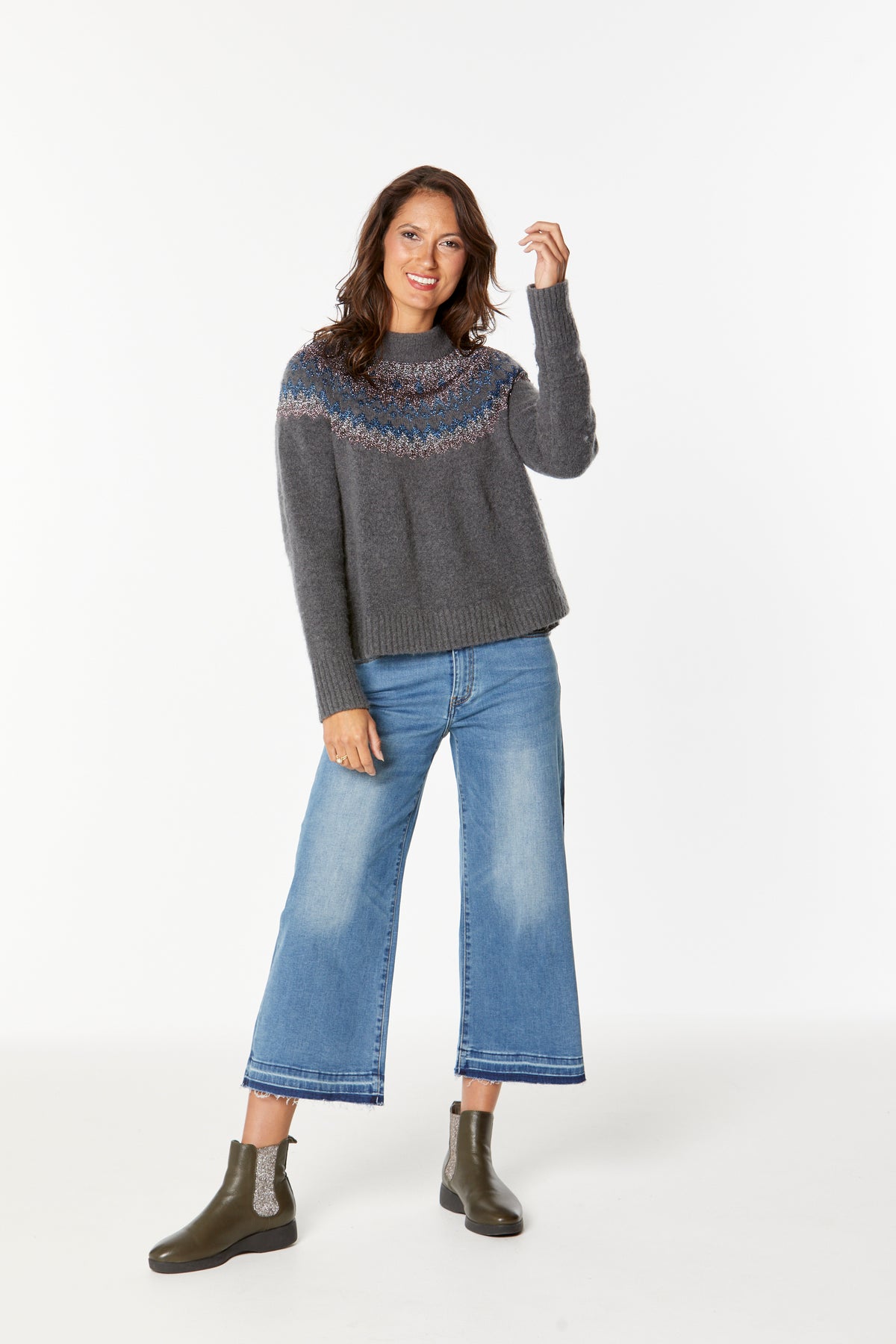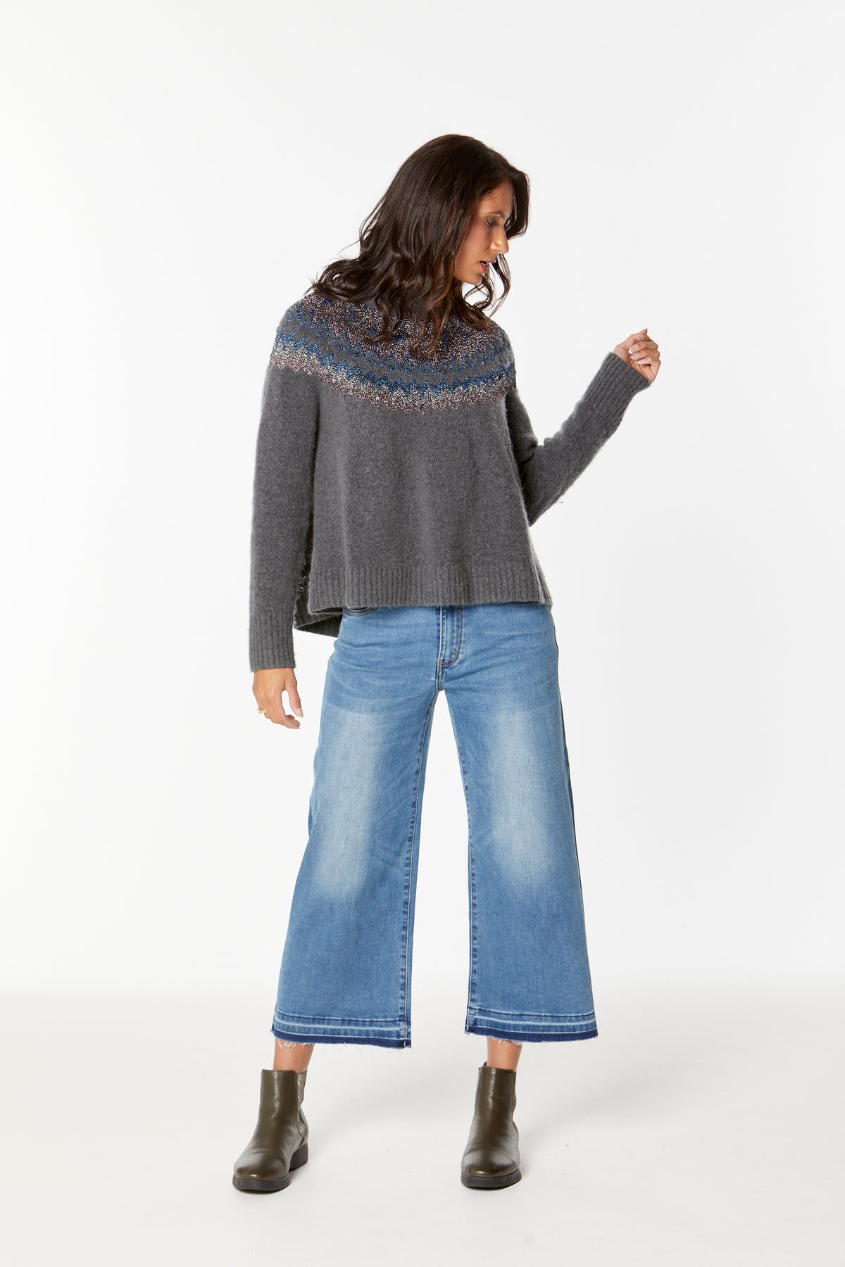 High-rise crop length wide jean