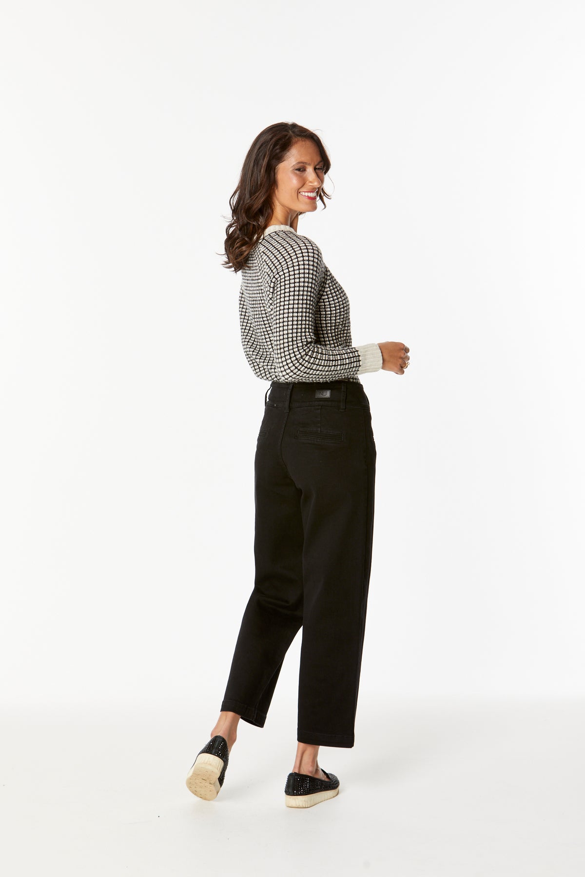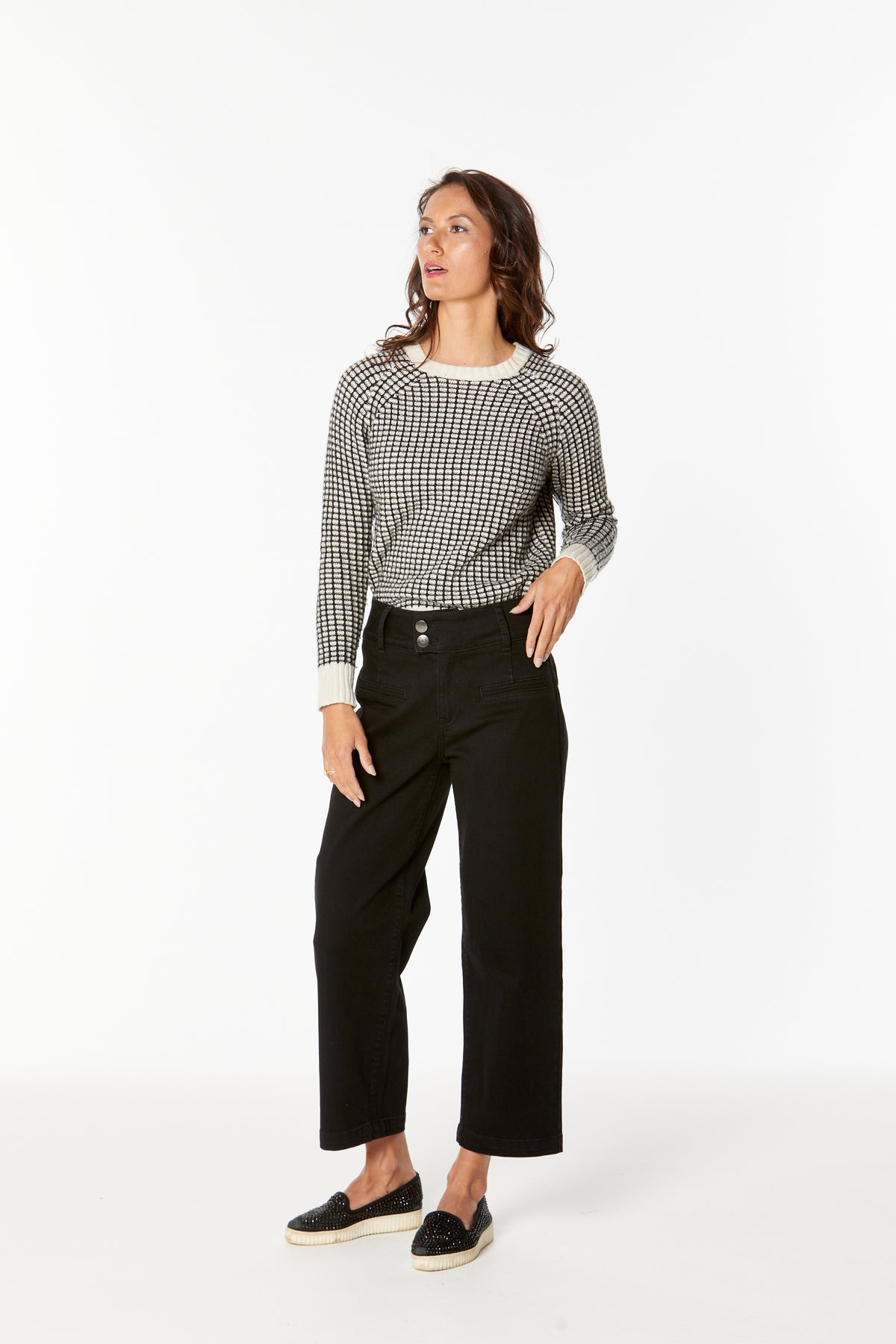 Mid-rise crop loose leg ankle grazer jeans