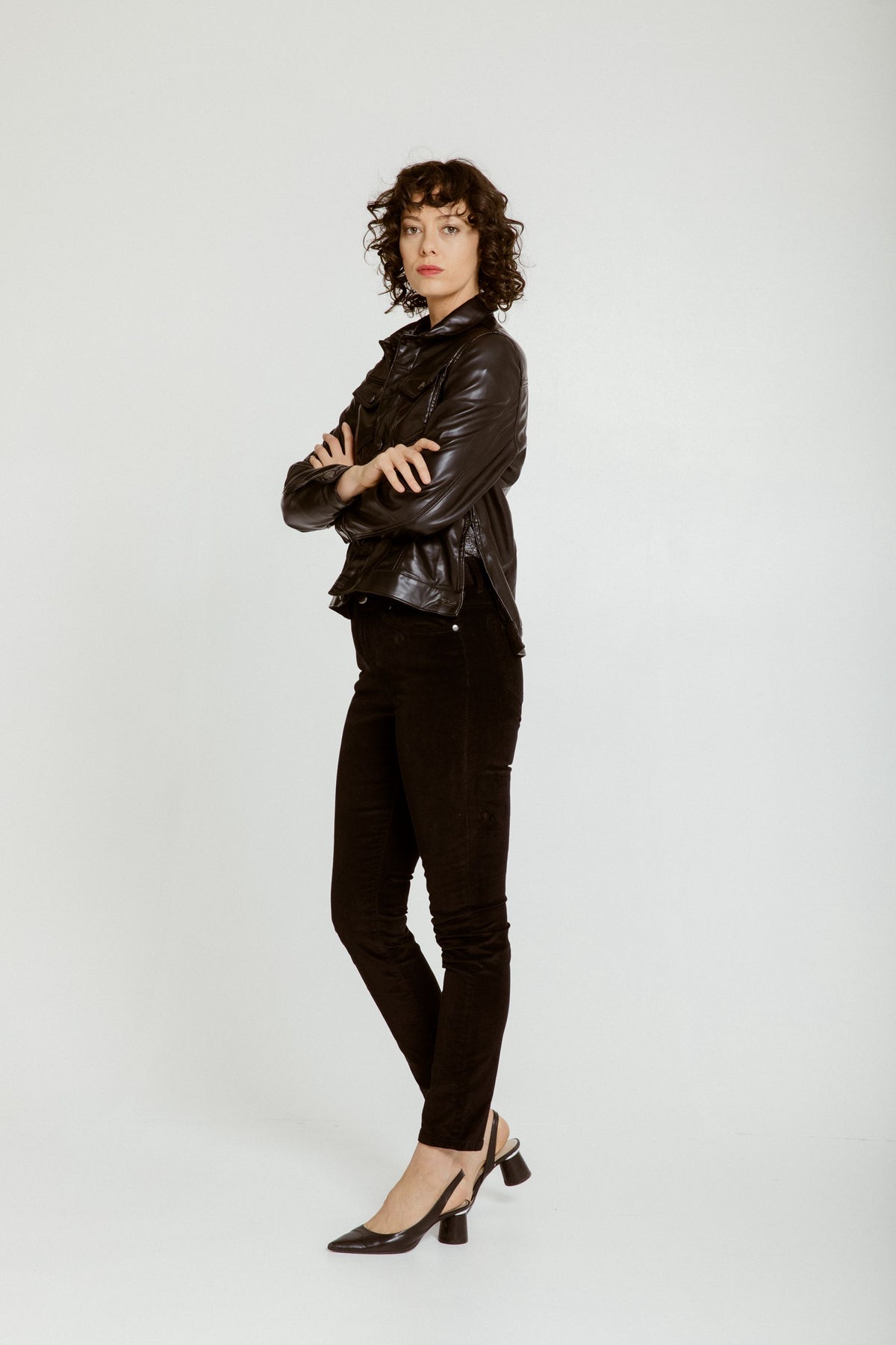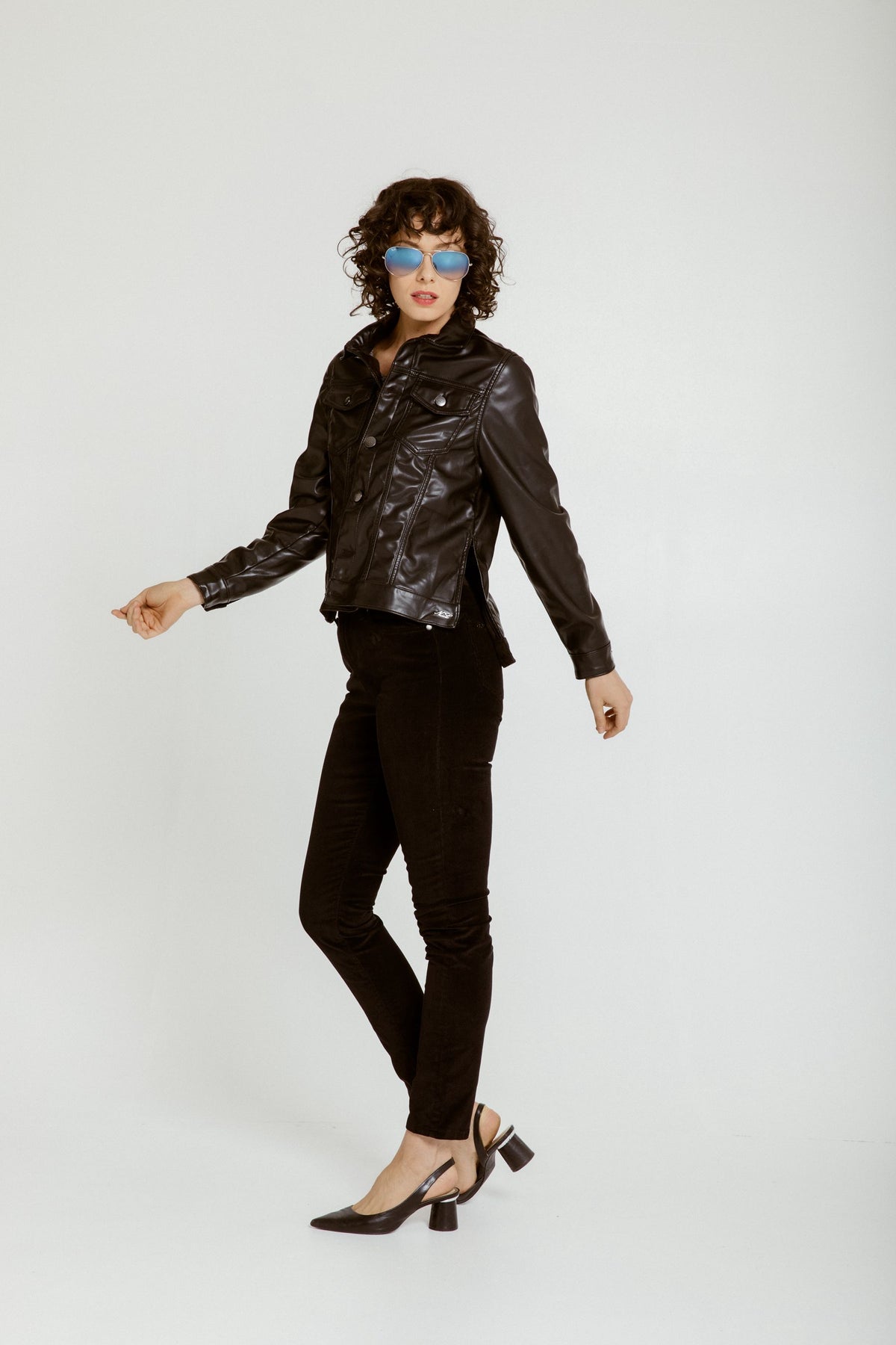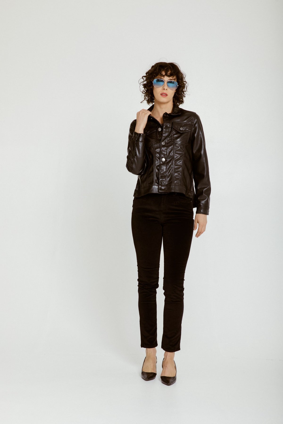 Mid-rise vegan leather jacket