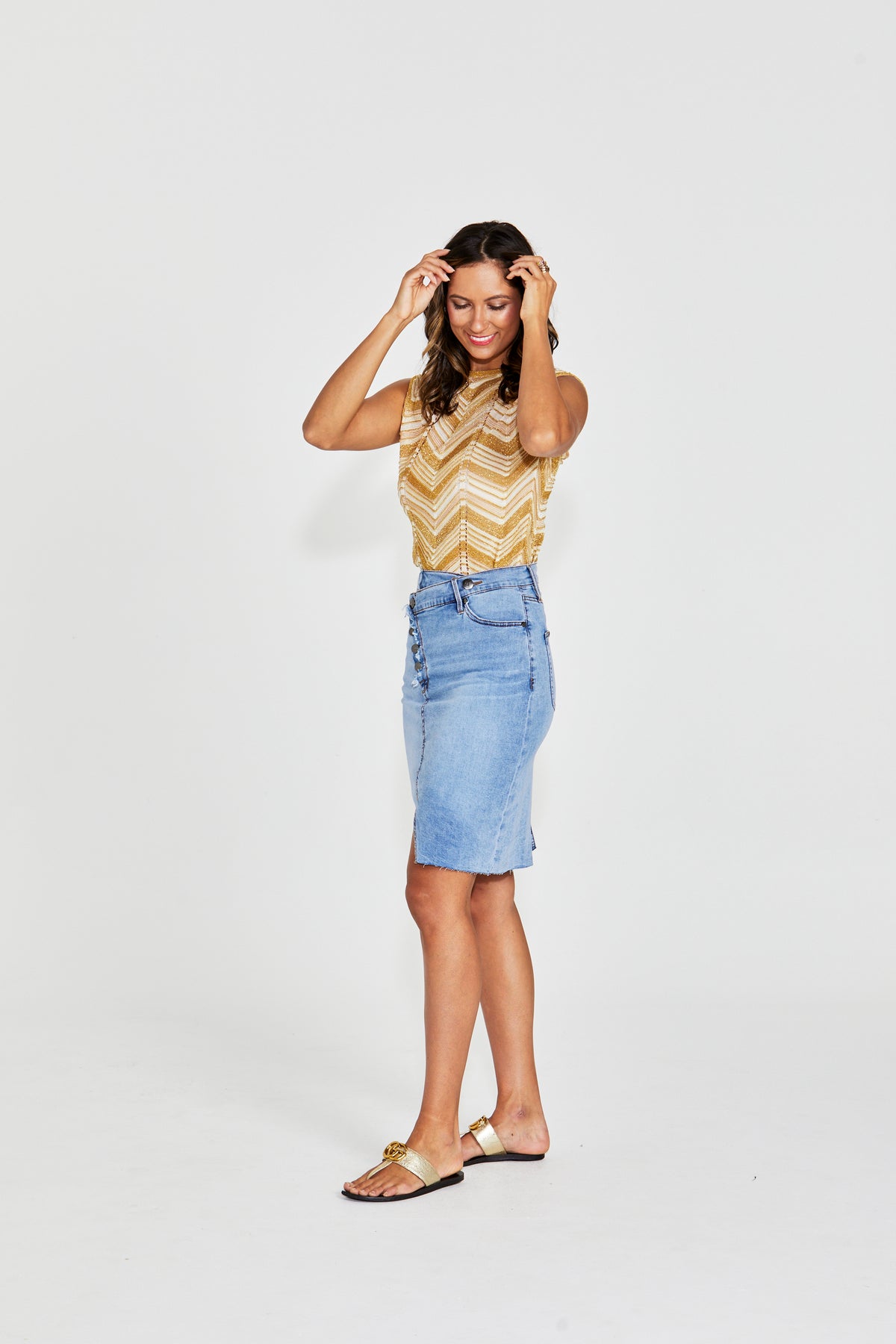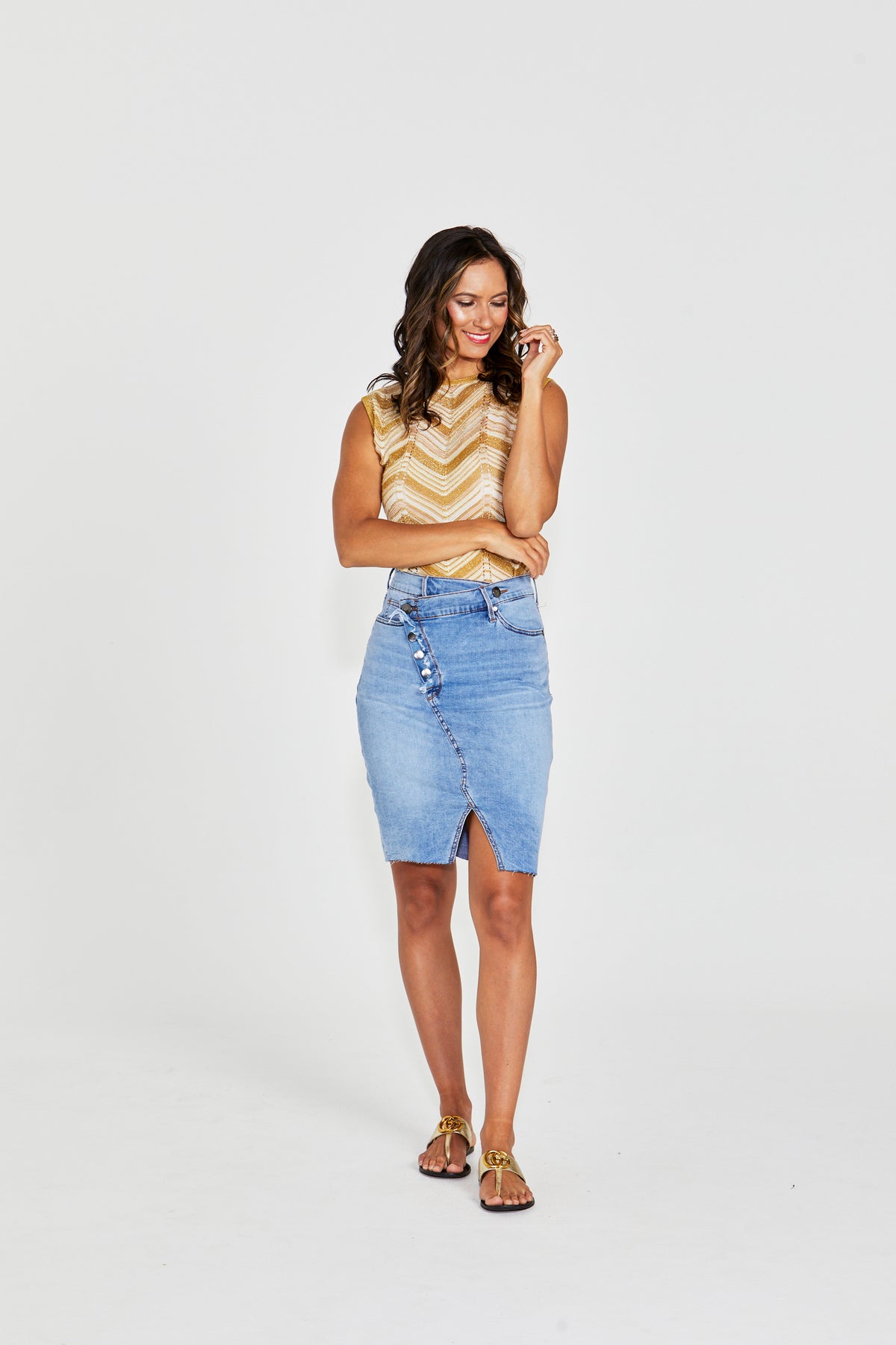 • Knee Length Denim Skirt