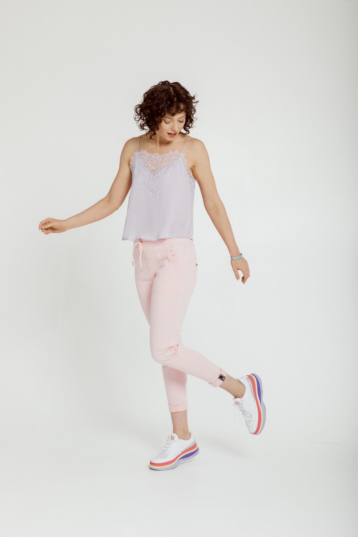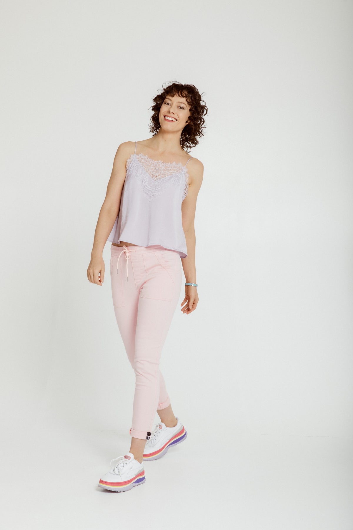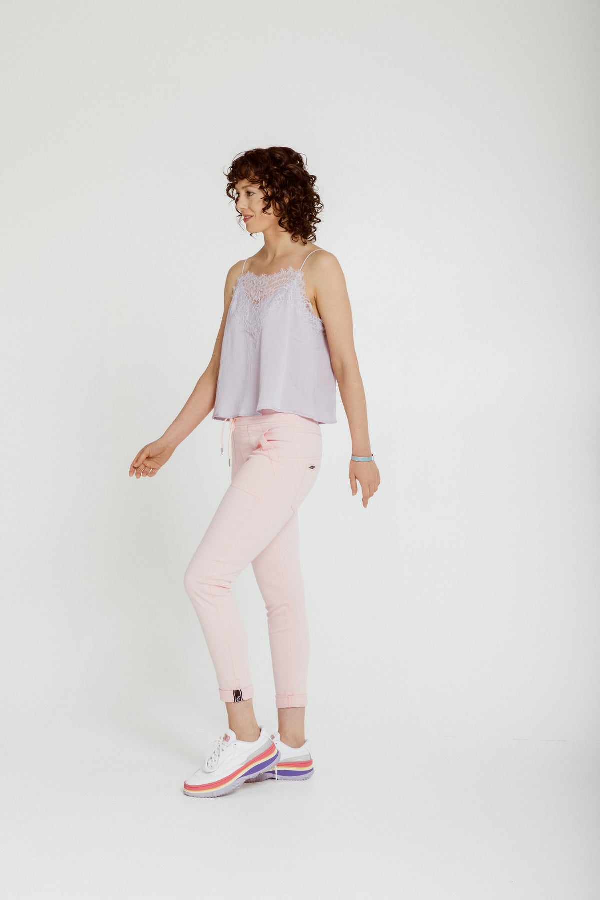 High-rise jogger roll cuff jean