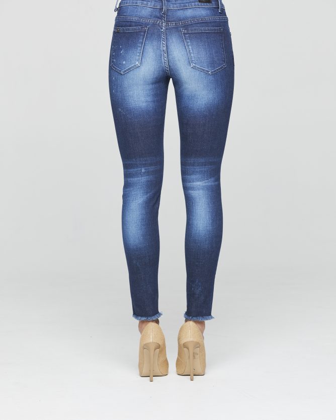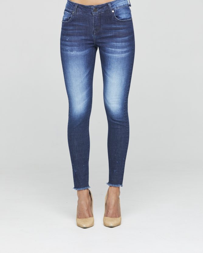 Mid-rise raw crop skinny leg jean