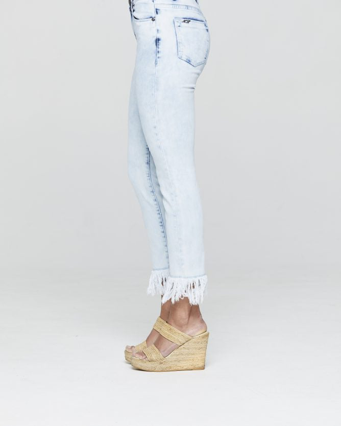 Mid-rise crop length tapper jean