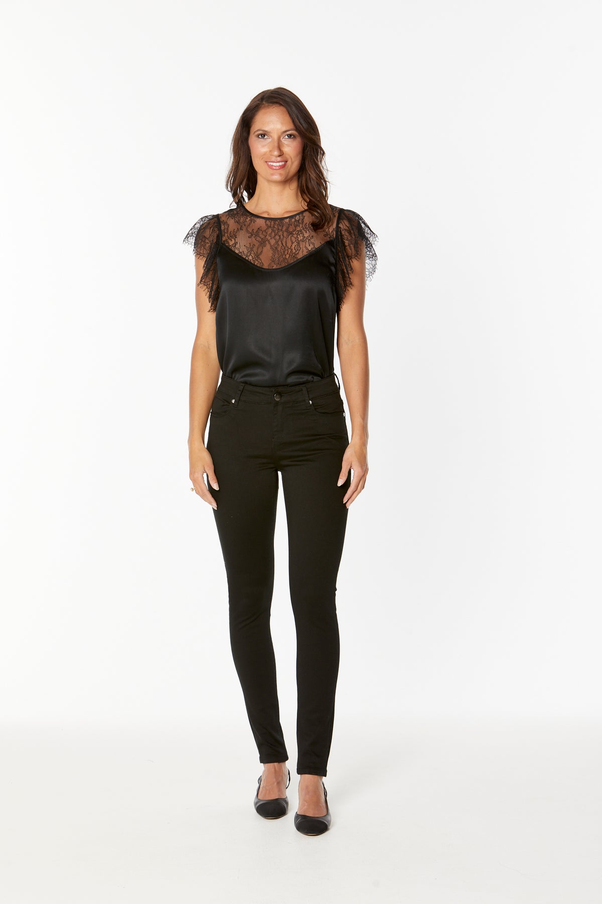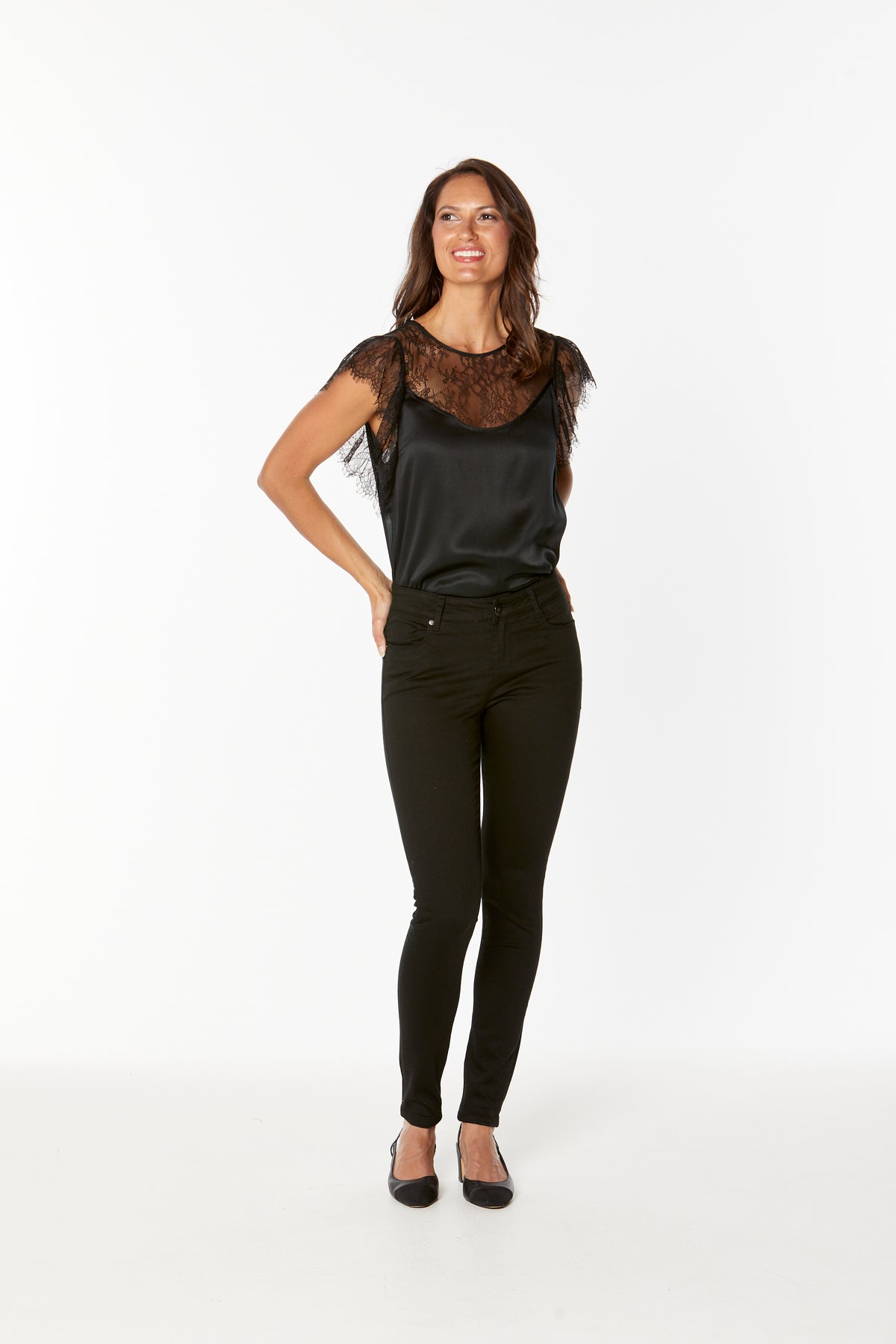 Model is 175 cm tall with 81 cm bust, 64 cm waist & 91 hips wearing size XS or 26