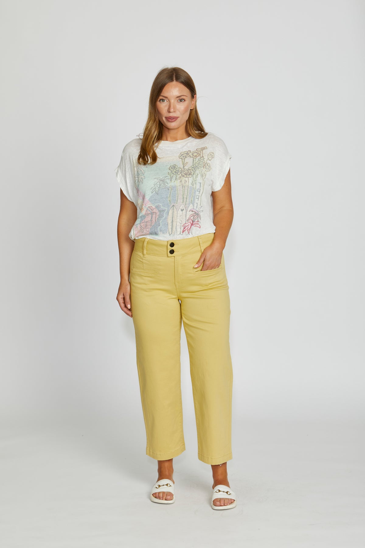 Mid-rise crop loose leg ankle grazer jeans